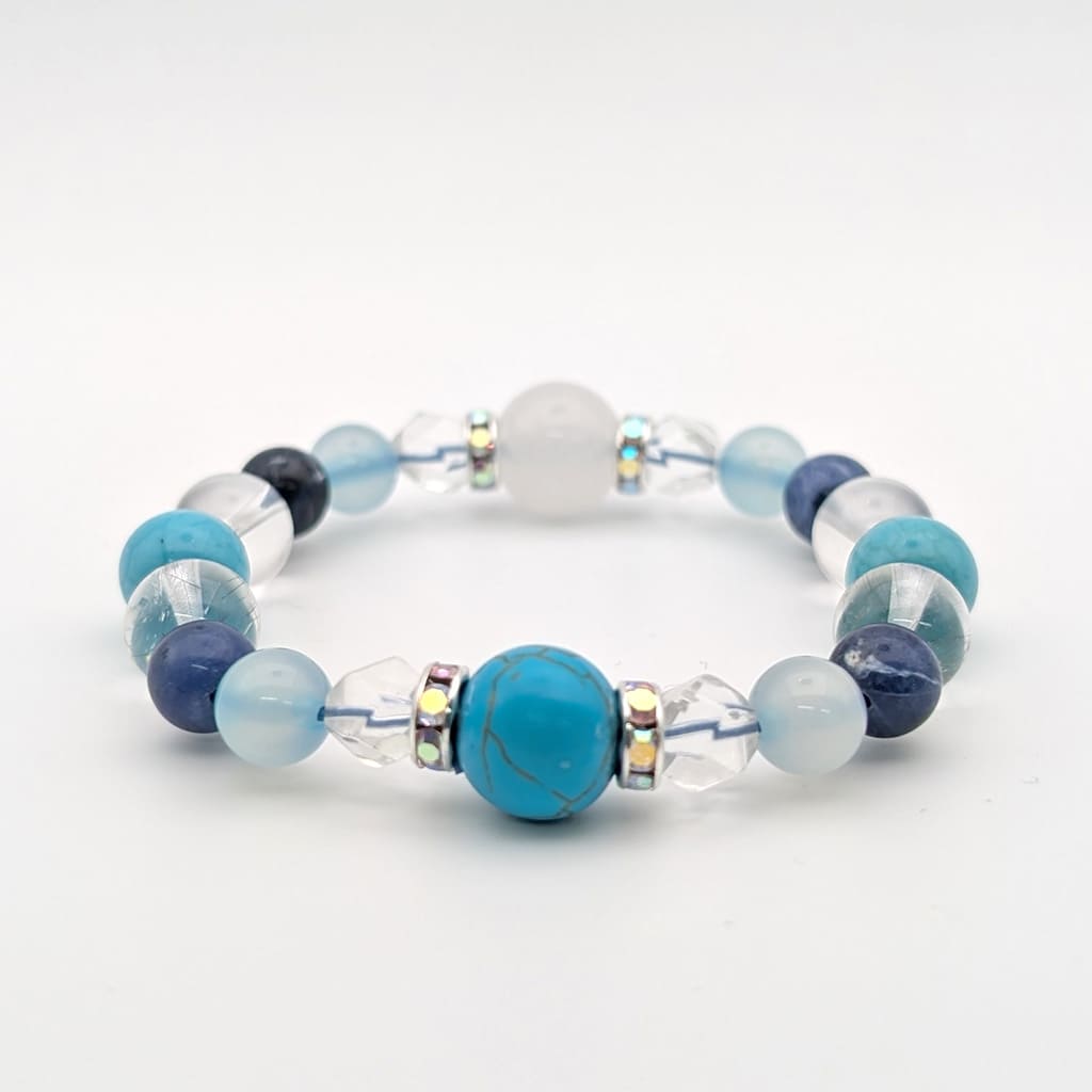 空のような開放的なエネルギーを持っており、精神的な疲れを癒してくれます。感情の安定: イライラや不安を鎮め、荒れがちな感情を穏やかに整えてくれます。疲労回復: ストレスによる体調不良を感じている時に、心身をリラックスさせ、活力を取り戻すサポートをしてくれます。