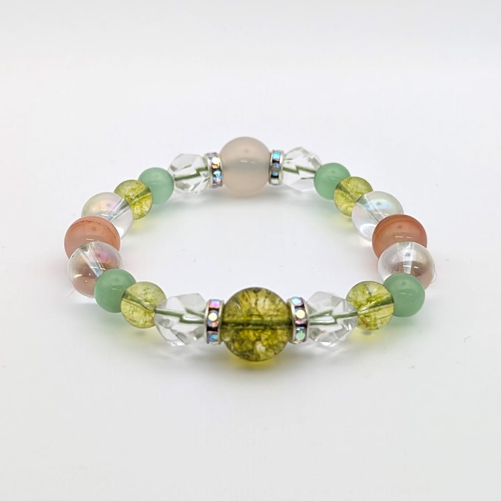 8月誕生石ペリドット天然石ブレスレットレディース(TX)【浄化用WhiteSageのお香プレゼント】